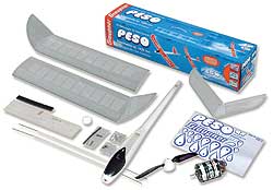 | "PESO" 本国(ドイツ)仕様詳細 "PESO(#4541)"はVテールのラダーとエレベーターでコントロールする、経済的なスタンダードモデルです。この機体はSPEED 600 PLUSモーターと1600mAhの6セルパックをパワーユニットに使用するようにデザインされています。"PESO QR(#4542)"はエルロン装備モデルで、スポイラーとして使用すれば正確なスポットランディングを可能にします。この機体には新型GRAUPNER COMPACT 340 7.2Vブラシレスモーターと1600mAhの7セルパックのパワーユニットが推奨となっています。両モデルとも上昇性能に優れており、非常に安定した飛行特性を持っています。また、PESO QRはワンメークのコンテストフライトにも最適です。PESOシリーズは並外れたクオリティの高さと、完成度の高さが特徴です。ARFキットのため、ウィングパネルとVテールは組立て済みで、半透明フィルムが張られています。また、Vテールはネジ留め、あるいは接着剤によって胴体に取り付けることができ、2枚のウィングパネルも接続が簡単です。PESOの化粧箱はフライト時のキャリングケースとしても使用可能です。 |