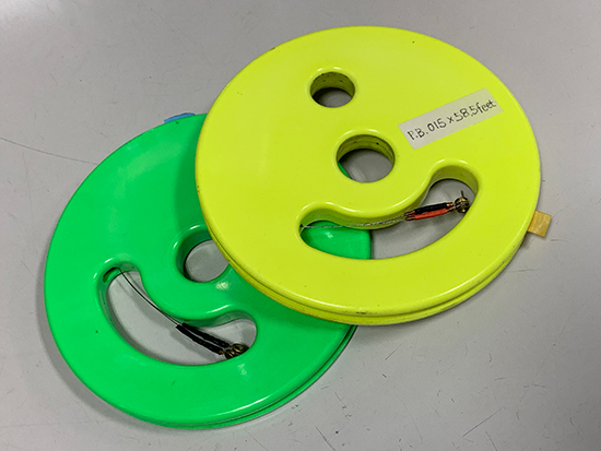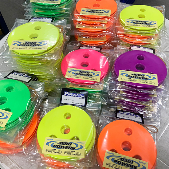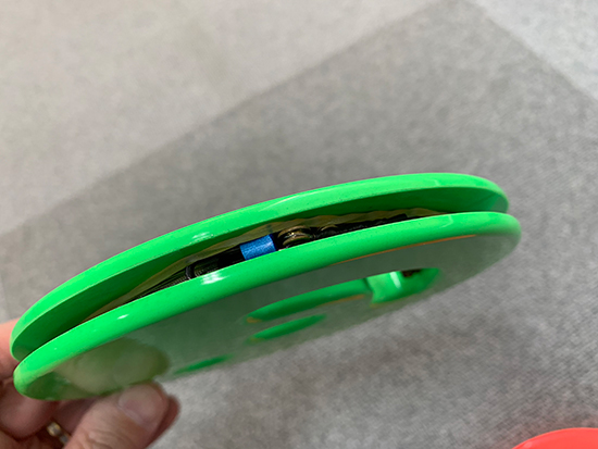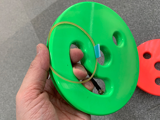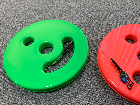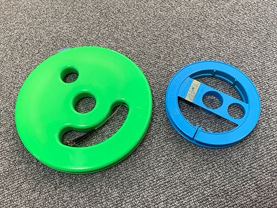 コントロールラインのワイヤーを巻取り保管するカラフルな樹脂製リールです