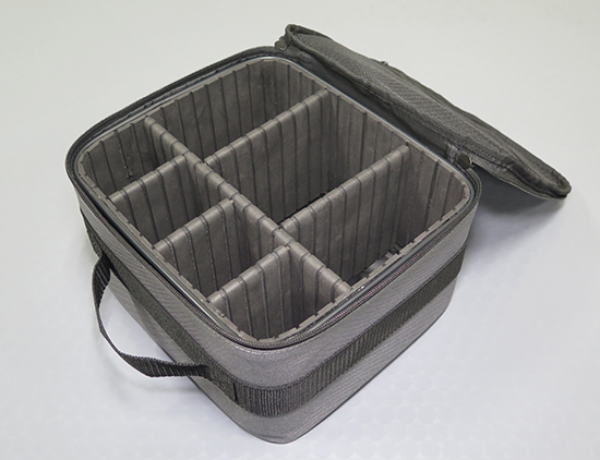 再配置可能なインサートがいろいろなサイズで同梱されているので、充電器やバッテリーなど