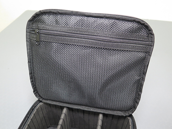 蓋の裏側は取説等、なにを収納しているか確認しやすいチャック付きのメッシュ仕様です。