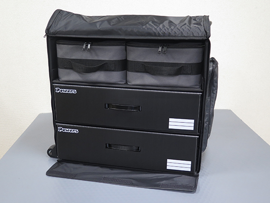 パワーズマジックやパワーズキャリーバッグに2個横並びで収納可能です。
